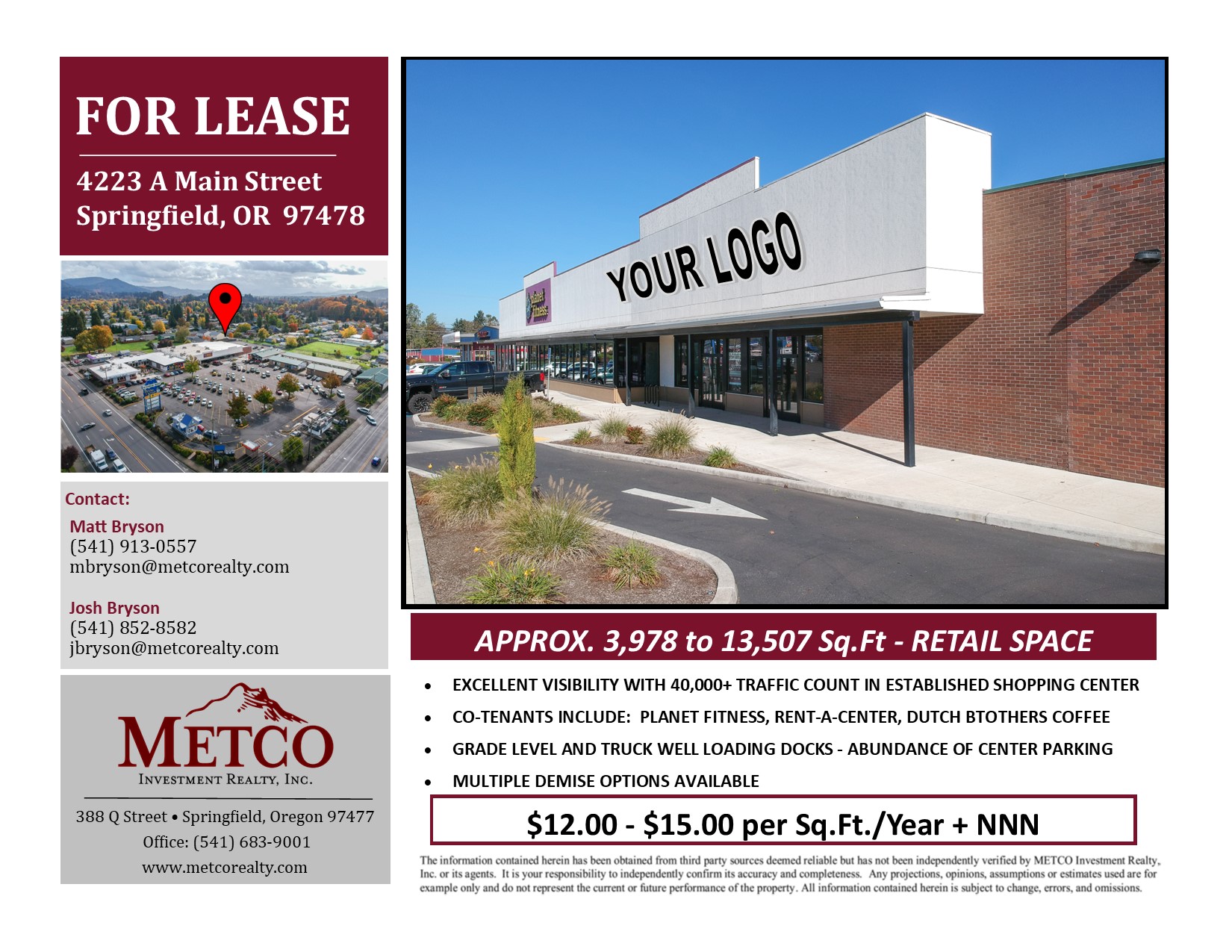 FOR LEASE: APPROX. 3,978 TO 13,507 SF RETAIL SPACE